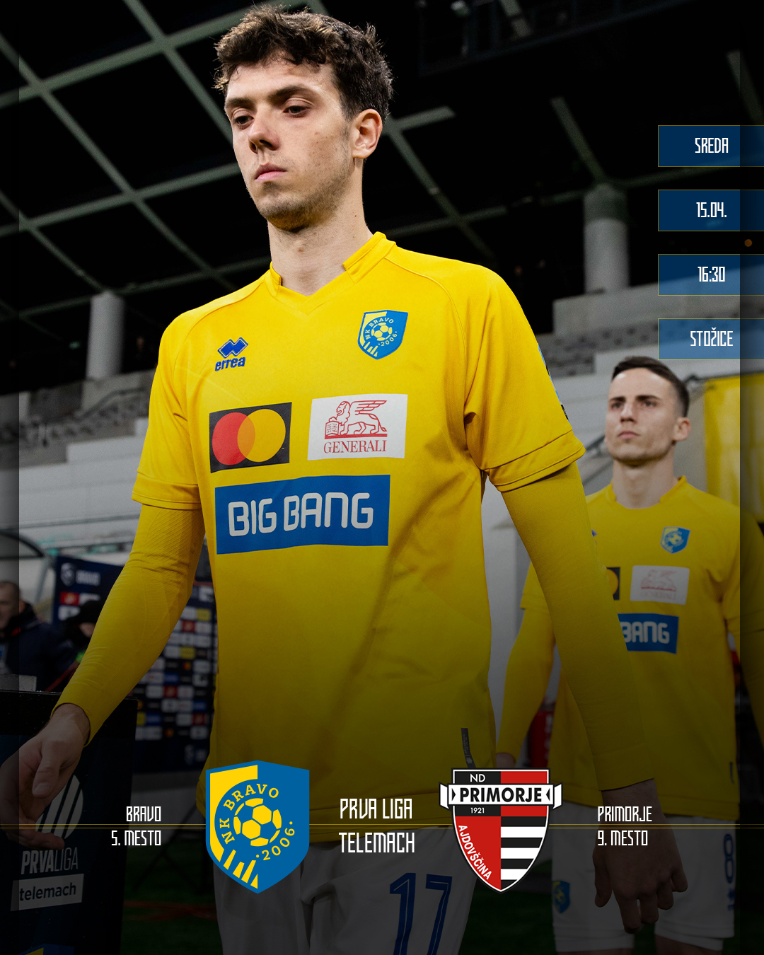 Peklenski aprilski ritem tekem se vrača na Stožice. V sredo ob 16:30 bo na sporedu tekma 30. kroga Prve lige Telemach med NK Bravo in ND Primorje.
